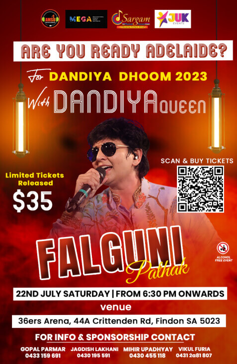 Dandiya Dhoom 2023 with Dandiya Queen.. Are you Ready? live in Adelaide Date: 22nd July, Saturday. Venue: Adeleide 36ERS Arena, 44A Crittenden Road, Findon,SA. #liveinadealaide #JUKevents #Falgunipathak
