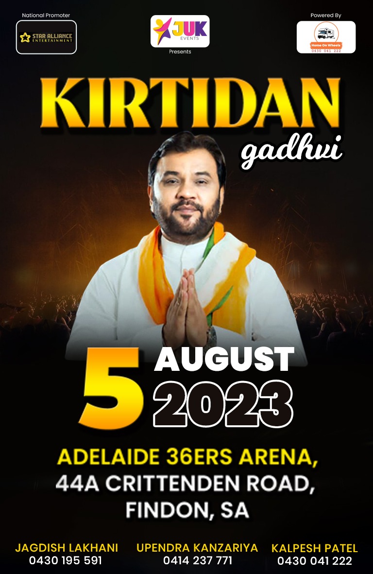 Kirtidan Gadhvi live in Adelaide Date: 5th Aug 2023 Venue: Adeleide 36ERS Arena, 44A Crittenden Road, Findon,SA. #liveinadealaide #JUKevents #kirtidangadhvi
